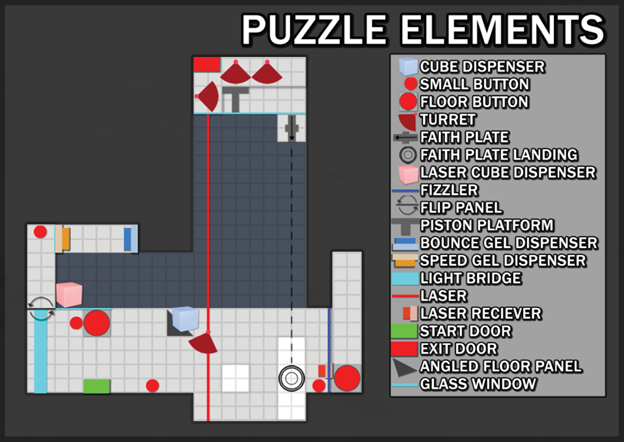 The purpose of this project was to focus on a small number of primary mechanics and create a level around them. Using a combination of the gels from Portal 2, i created a custom test chamber which followed a suitable design workflow used in other successful puzzle games.