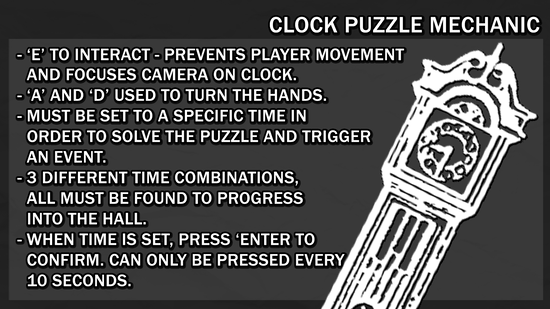 Submission for my final year project at university. In 3 months I created a highly polished, thoroughly tested vertical slice for a puzzle-horror game. I focused on the implementation of environmental storytelling and player experience through many stages of iteration. This project was awarded 1st place for Game Design at GradEX 2024 for its immersive atmosphere and engaging puzzle mechanics.